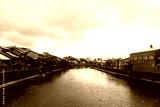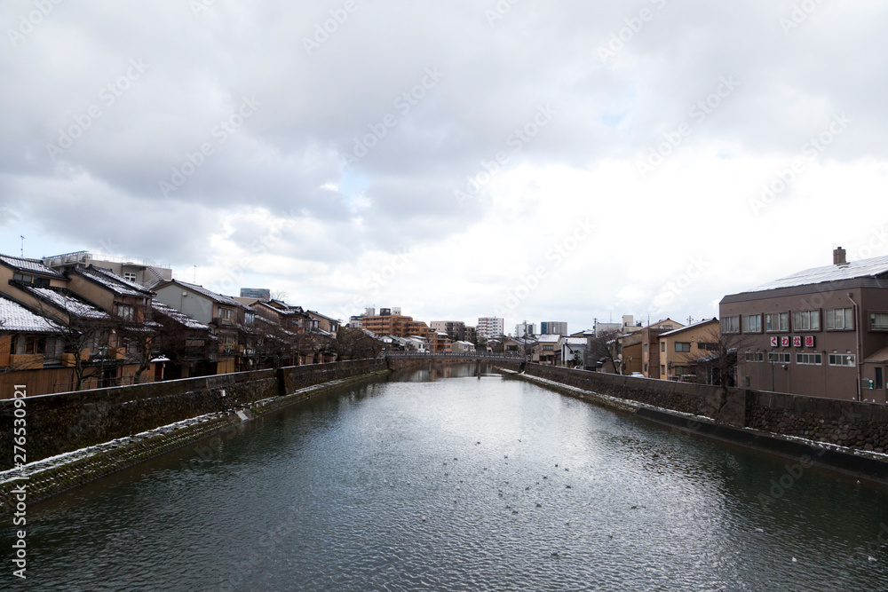 View of traditional Japanese houses along Asana River near Higashi Chaya area in Kanazawa,Japan