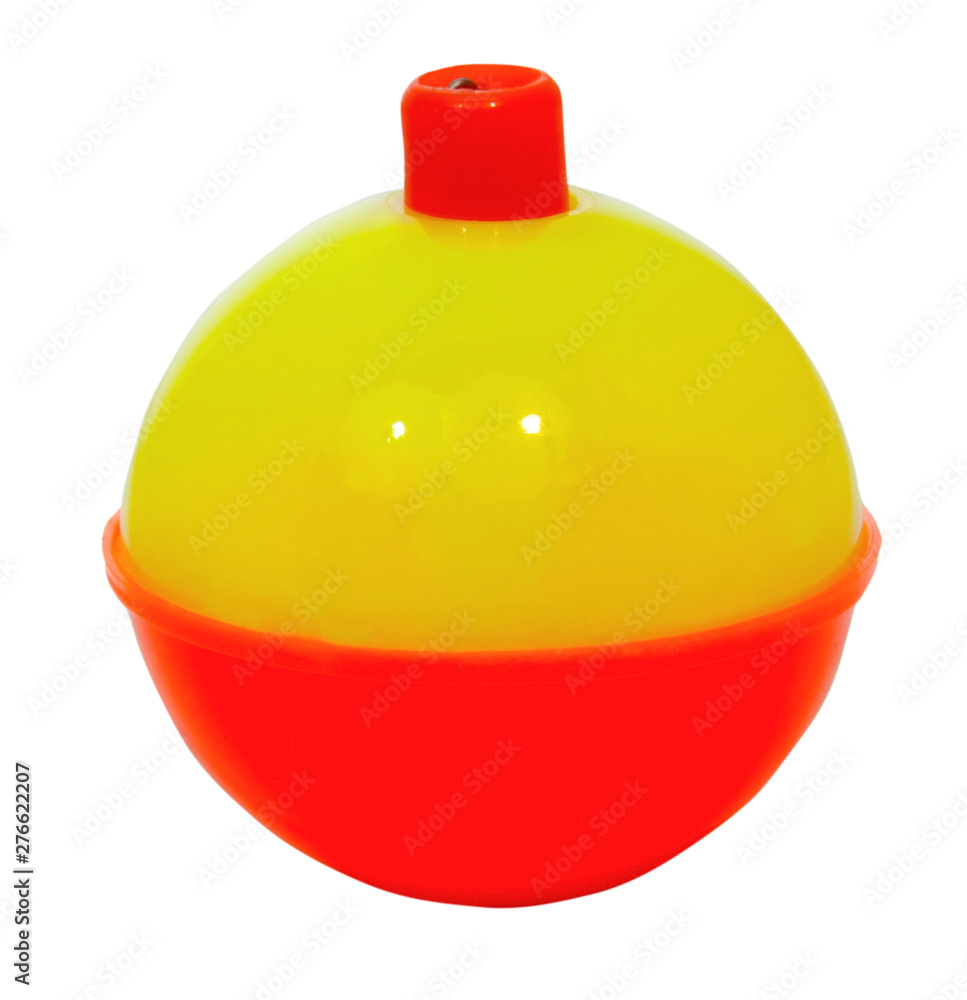 Isolated day glo yellow and red fishing bobber.