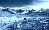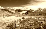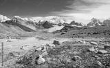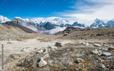 Panoramic view of Mount Everest (8,848 m) the highest mountains in the world with Himalayan range view from Renjo la pass (5,340 m) during trekking in Sagarmatha national park, Nepal.