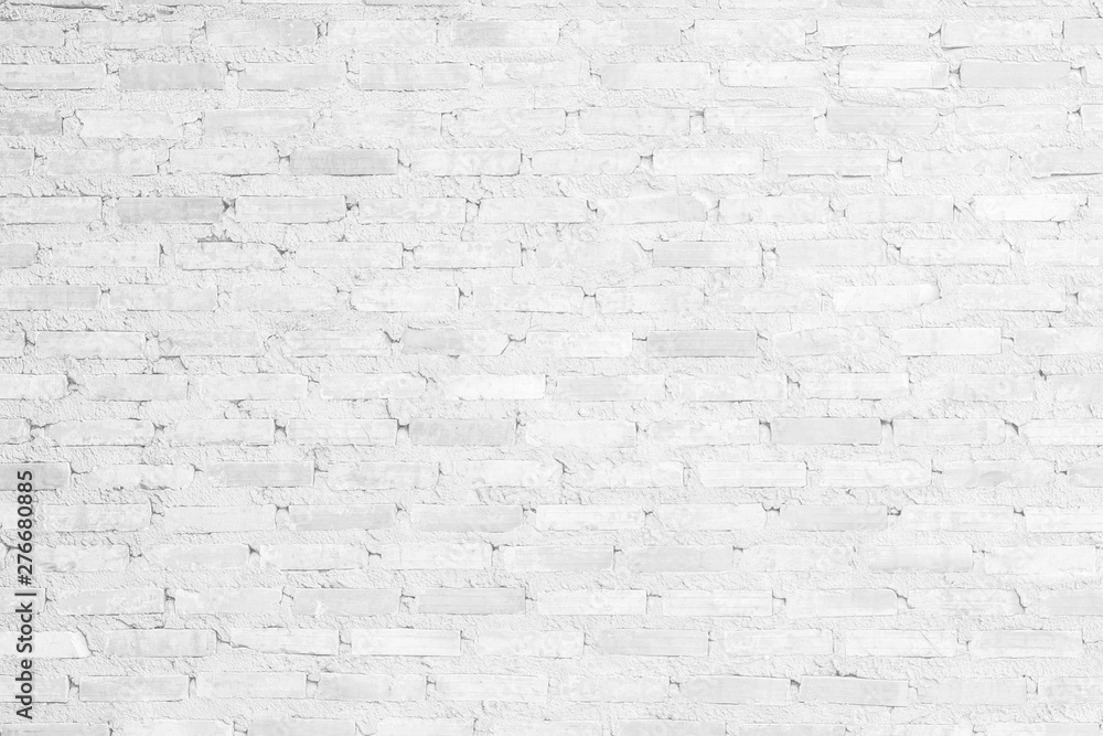 Wall white brick wall texture background. Brickwork or stonework flooring interior rock old pattern clean concrete grid uneven bricks design stack.