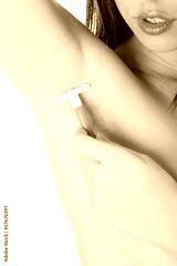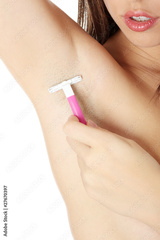Woman shaving armpit