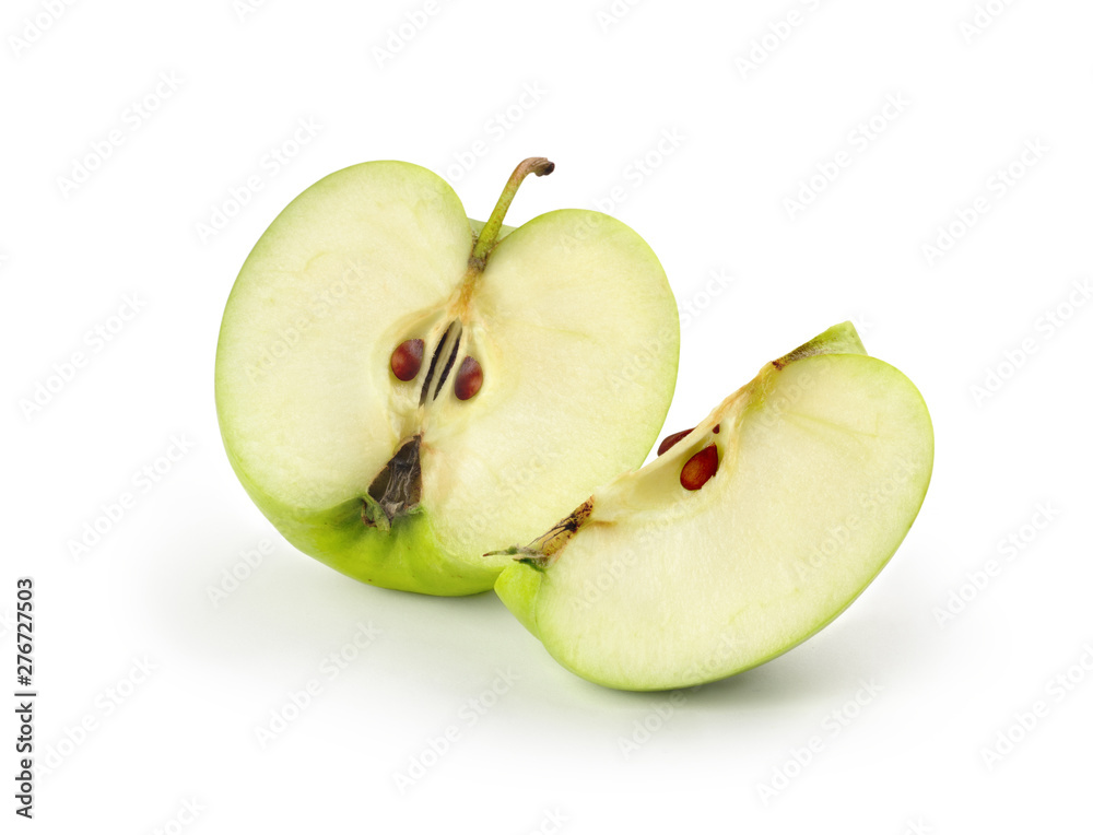 sliced green apples on white background