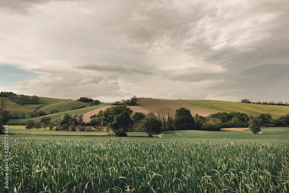 Beautiful rural landscape in spring, cultivated fields