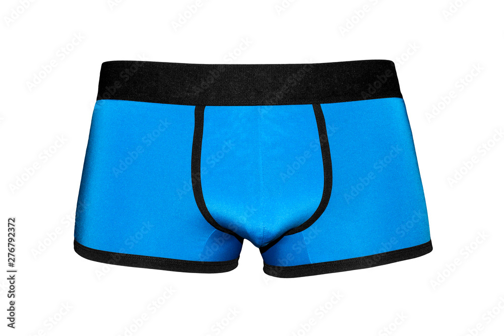 Men's boxer briefs in blue on a white background.Men's swimming trunks on a white background.