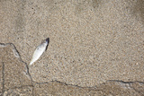 Little fish on sand at beach. Waves threw fish on the sea coast
