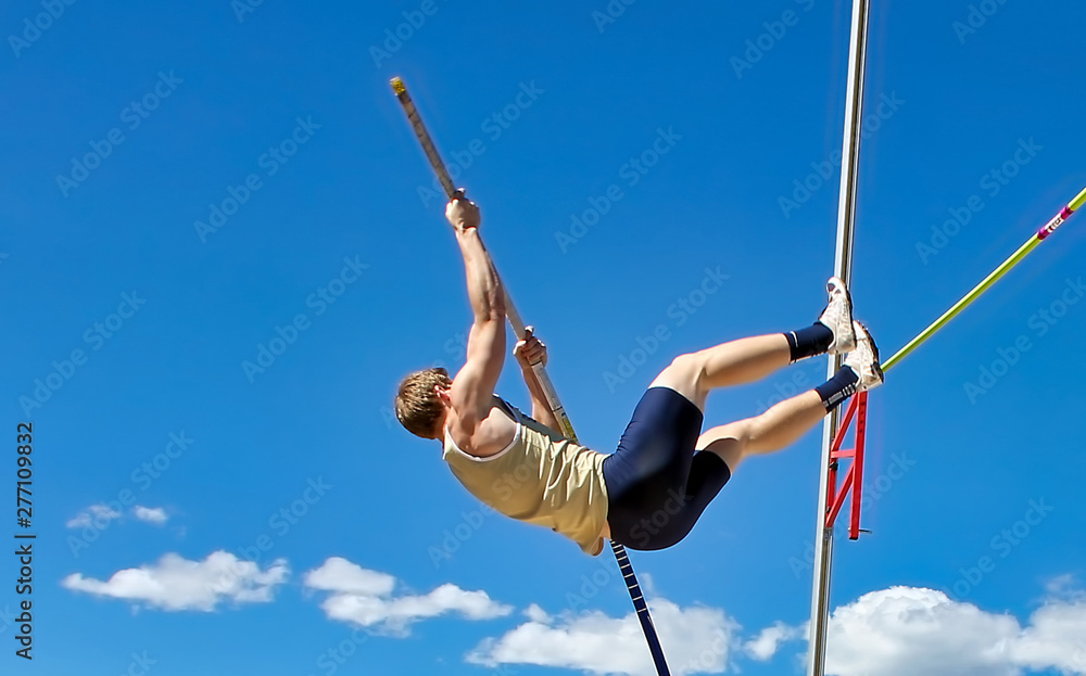 College pole vaulter at a track meet