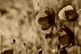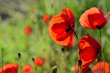 Wiese mit leuchtenden Mohnblumen im Sommer
