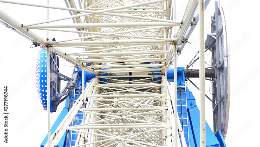 Teilaufnahme eines Riesenrades mit weißen Streben vor weißem Hintergrund