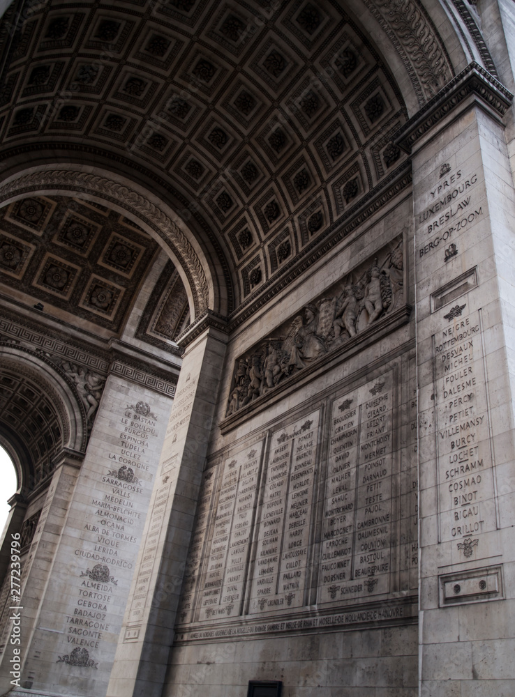 Paris, France, February 22, 2013: Detais of the Arc de Triomphe on a cloudy day, Paris,