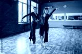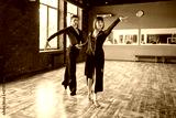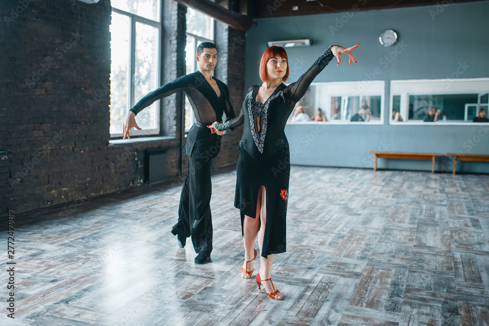 Couple on ballrom dance training in class