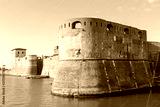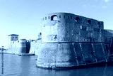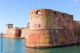 View to Old medieval Fortress of Livorno, Italy under blue sky
