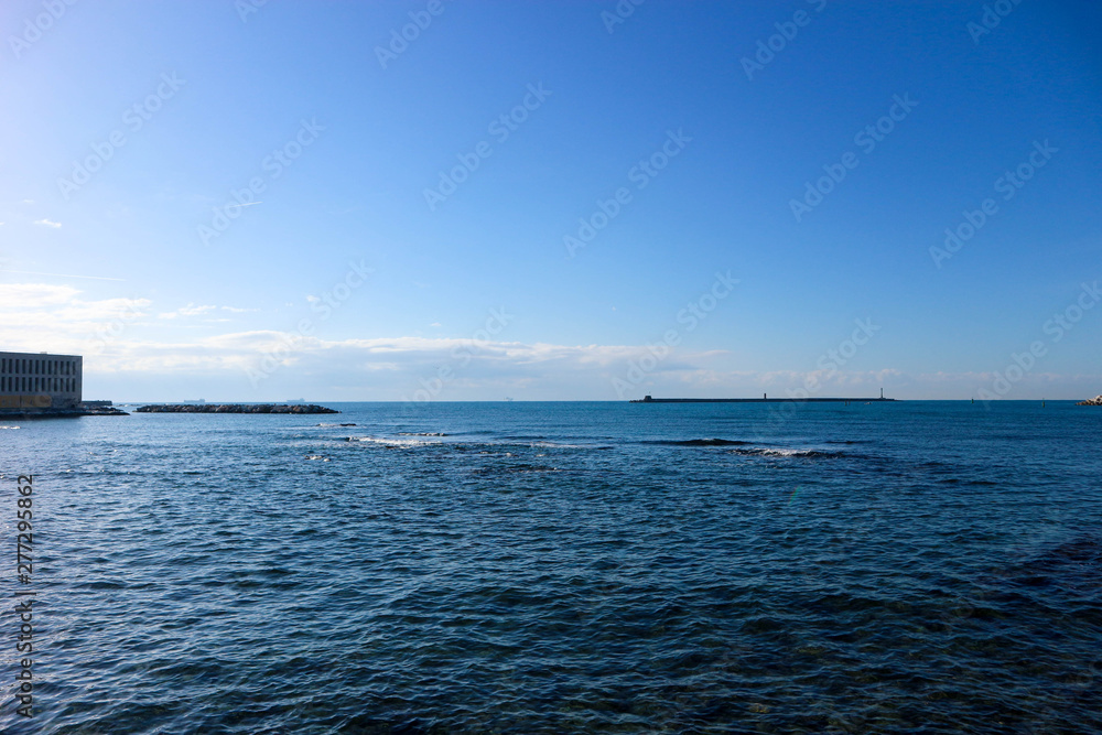 Coast of the ligurian sea in Livorno, Italy in winter sunny day