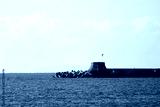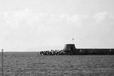 View to a pier of Livorno port, Italy on Ligurian sea