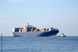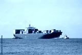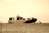 Large cargo container ship in harbor of Livorno, Italy