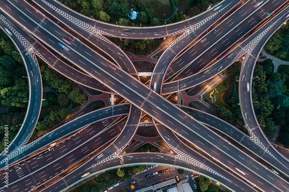 Aerial view of highway and overpass in east Yan`an road, Shanghai city