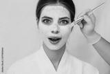 woman with beauty mask on face making surprised face. Wow it is cool beauty mask for moisturizing skin