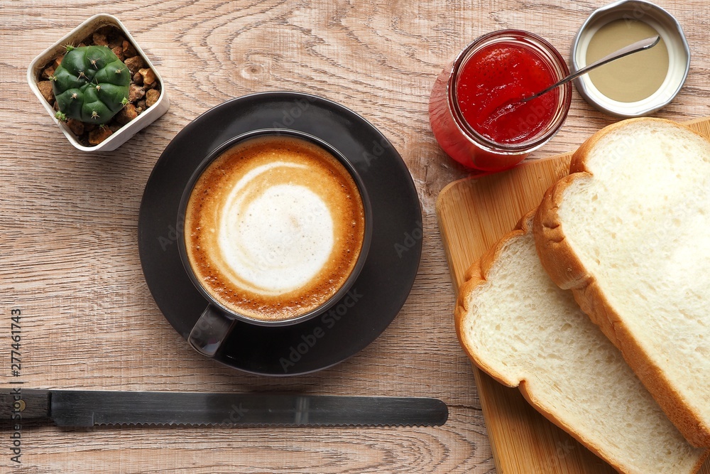A cup of coffee on a wooden table