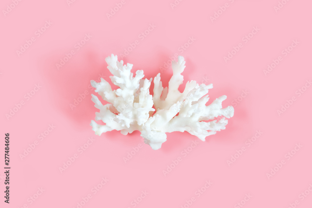 Сalcic skeleton of coral polyps on a pastel pink color background. Minimal marine concept.