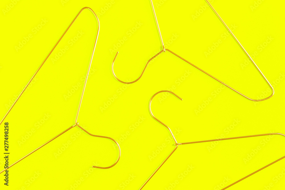 Three wire coat hangers on yellow background