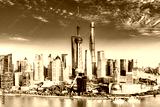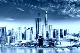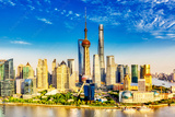 Shanghai city skyline with huangpu river. Pudong business district in Shanghai, China with blue sky during summer sunny day.