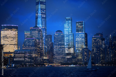 New York city skyline with illuminated buildings
