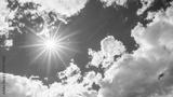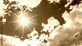 Sommer Hintergrund, wunderschöner blauer Himmel mit strahlender Sonne und Wolken