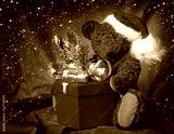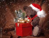 Christmas teddy boy on brown background