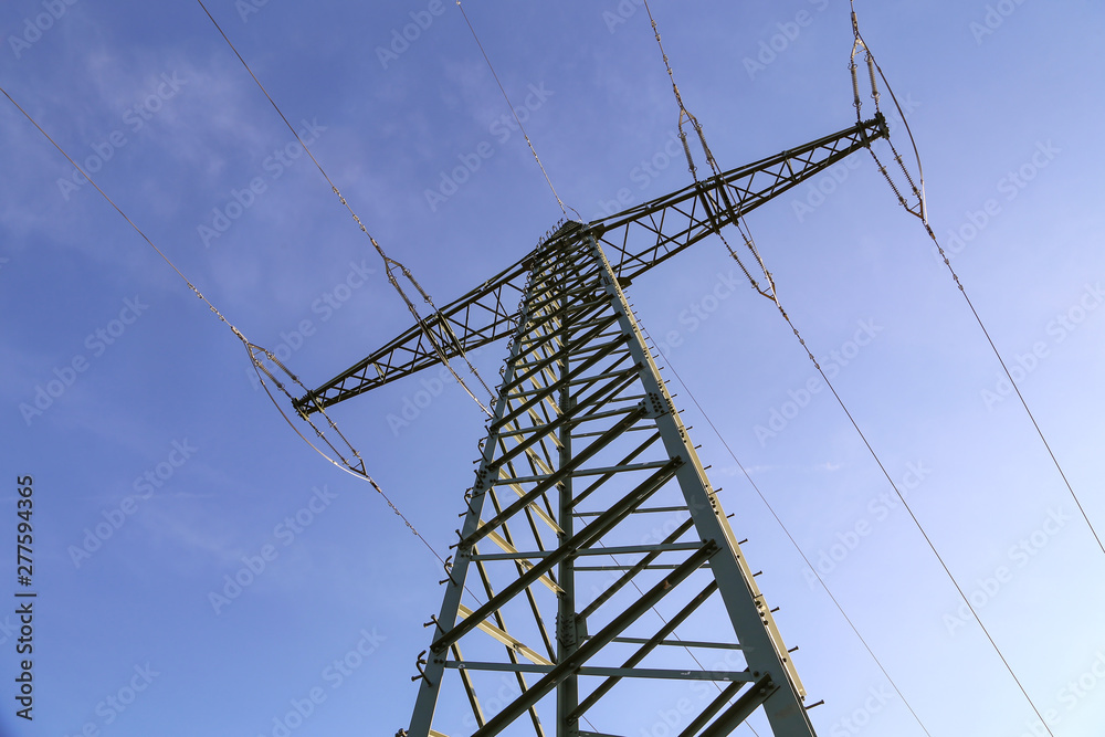Transmission line on background of blue sky