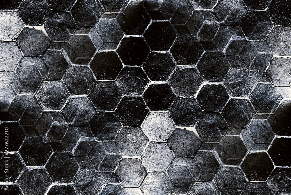 Hexagonal bricks pattern of walkway or pathway with stains as abstract material textured and background