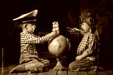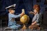 Two boys, imagining themselves captain of the ship and pilot, play in his room