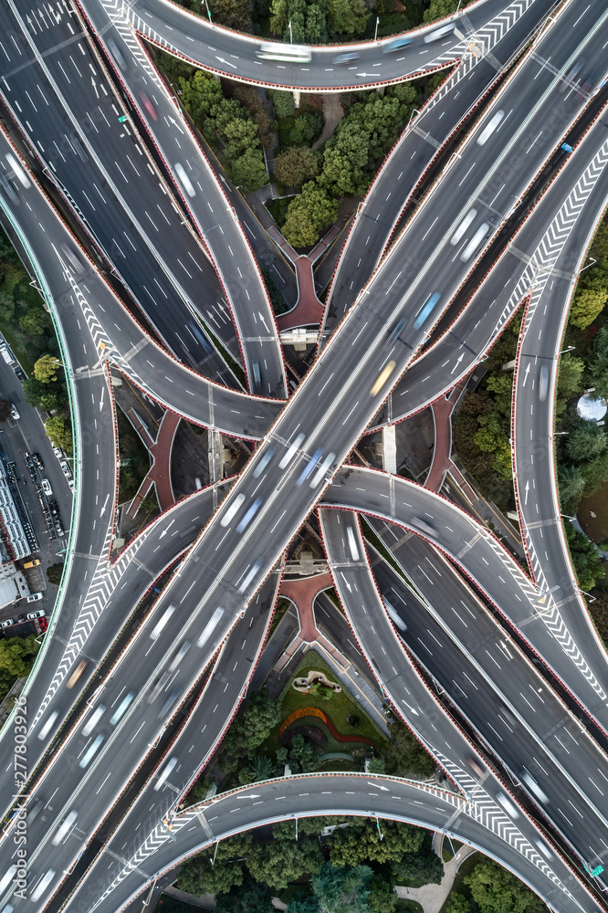 Aerial view of highway and overpass in east Yan`an road, Shanghai city