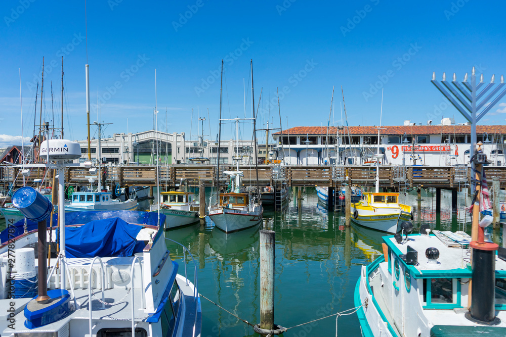 Sunny Day View of Fisherman's Wharf on Jefferson St in San Francisco,CA