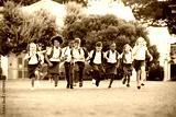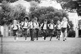 Excited Elementary School Pupils Wearing Uniform Running Across Field At Break Time