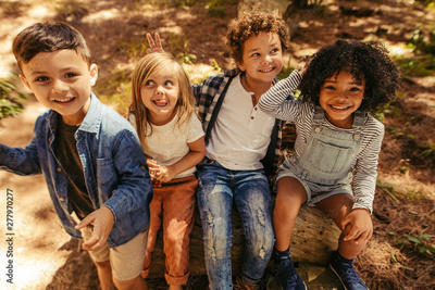 Children having fun in forest