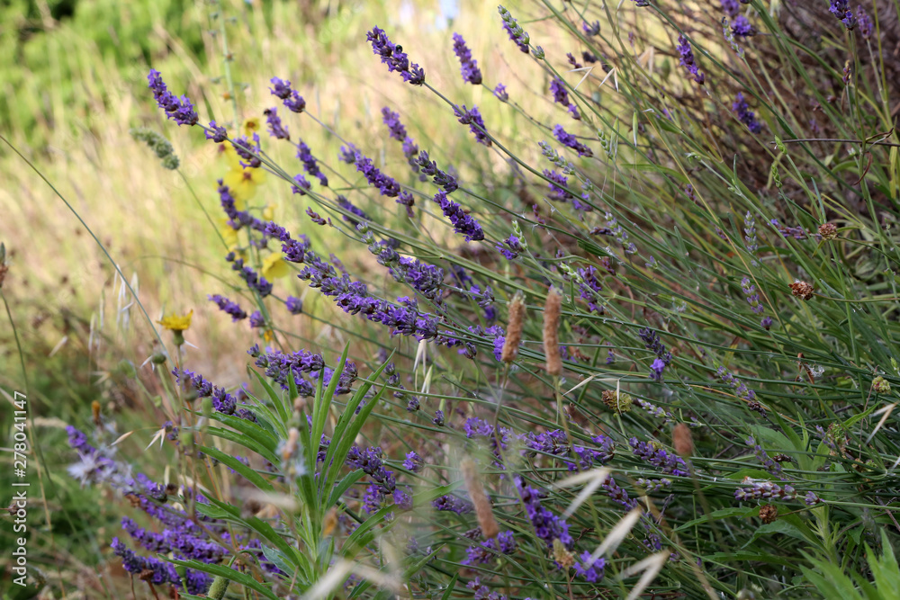 Close up Bushes of lavender purple aromatic flowers