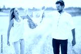 Father and mother throws up daughter in the sky in wheat field on sunny day.