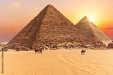 The Pyramid of Menkaure and the Pyramid of Khafre in the sunset rays, Giza desert