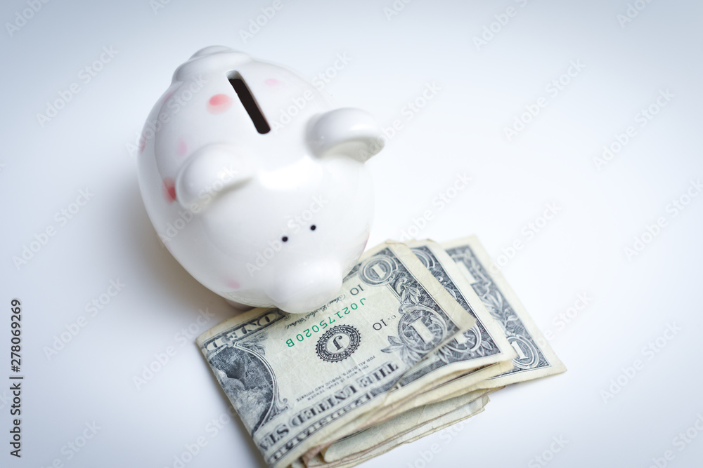 Savings account concept, piggy bank with personal savings for household bills from salary