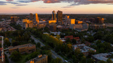 Sunset Light Hits the Buildings of Downtown White Plains New York