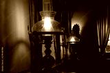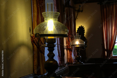 A beautiful table lamp stands in a room
