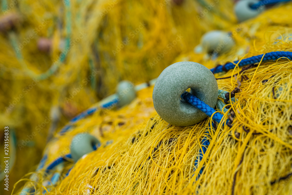 Closeup of a yellow fishing nets