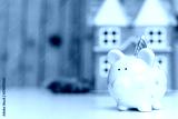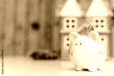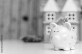 Piggy bank and new home, concept of saving money to pay for mortgage of new property