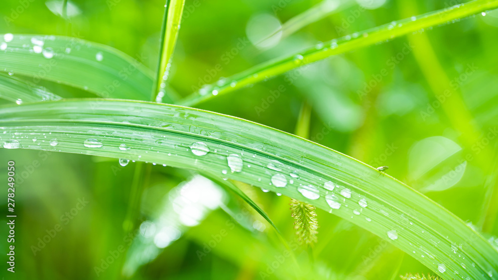 Green Grass Leaf With Raindrops