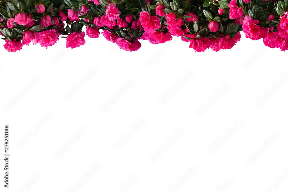 Pink potted azaleas (Azalea indica) isolated on white background. Upper decoration, side view.