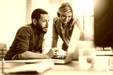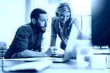 Coworkers team at work. Group of young business people in trendy casual wear working together in creative office.