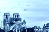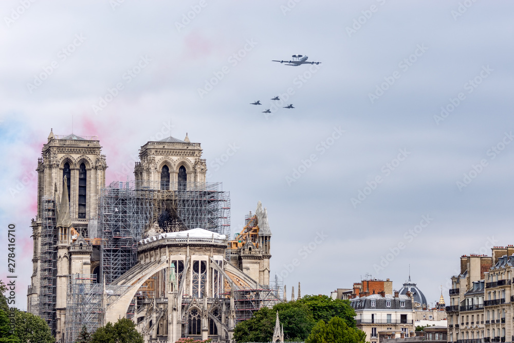 Paris, France - July 14 2019: Bastille Day Aircrafts Parade over Notre Dame de Paris - this is an AWACS.