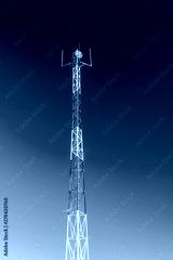 Red and white mobile phone cell tower repeater, with a small microwave dish.
