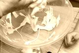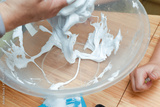 Children at home making homemade slime. Focus on hands mixing the ingredients
