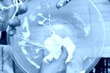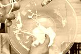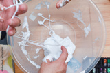 Children at home making homemade slime. Focus on hands mixing the ingredients