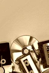 The concept of evolution music. Cassette, CD-disk, mp3 player. Vintage and modernity. Music support.
